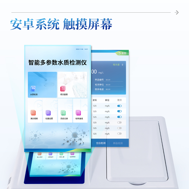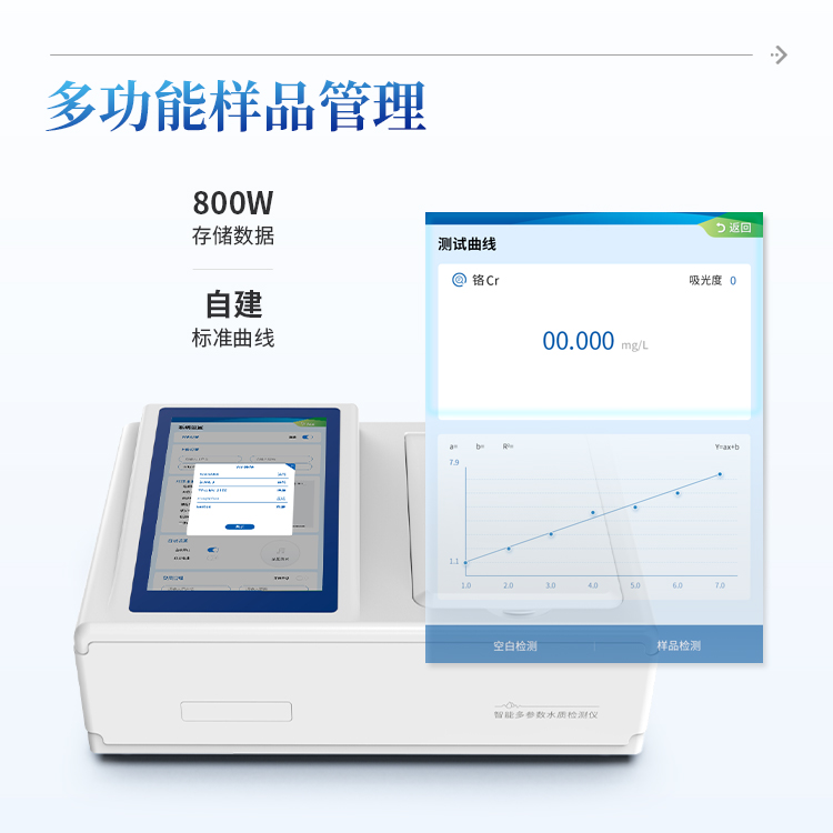 多参数水质重金属检测仪是完全参考国家标准、环境标准等相关标准设计制造,适用于国内外众多检测标准。主要检测水质六价铬、总铬、铅、镉、汞、砷、铜、总铜、锌、总锌、铁、总铁、镍、总镍、锰、总锰、钛、钒、银、铝、锡、铍、钡、锑、钴等重金属含量指标;本仪器兼具智能数据分析功能,图表、列表显示数据,分析一目了然;高清晰度彩色液晶触摸显示屏,androids智能操作系统,中文显示界面,中英文键盘,人性化操作,使用更简单。