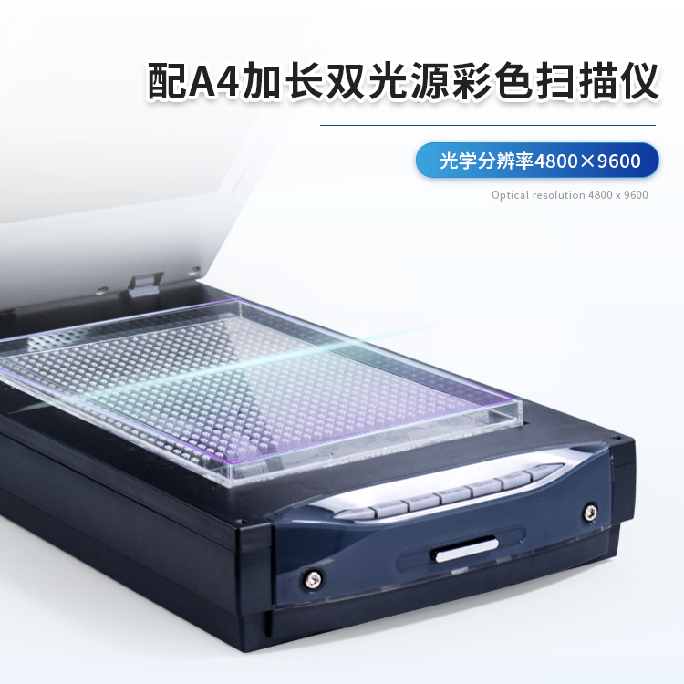 1、★配光学分辨率4800×9600、A4加长的双光源彩色扫描仪来成像。透扫幅面30 cm×20 cm,最小像素尺寸0.0053mm ×0.0026 mm。