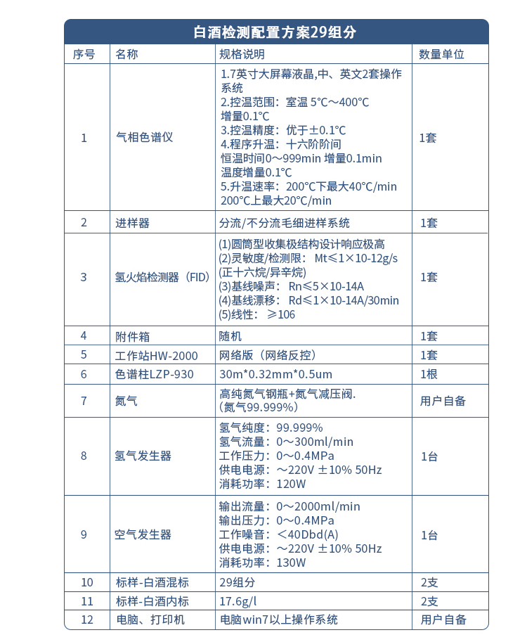 9 | 白酒混标 | 30种组分 | 来因科技 | 2支 | 赠送 |