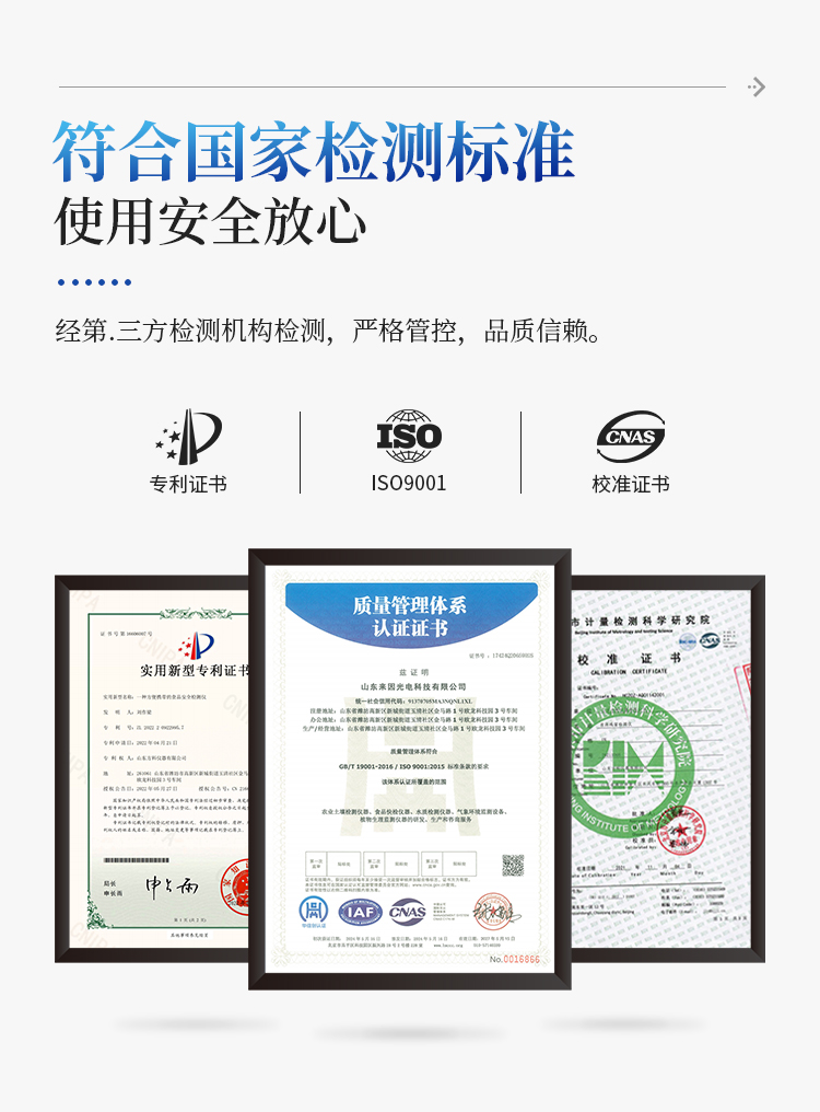 12.样品前处理实验操作步骤全部内置,检测人员无需对照说明书,可以根据仪器提示一步步操作、更适用于新手操作。在检测步骤中内置校准功能,无需手动校准或者开关机校准,确保检测精度。