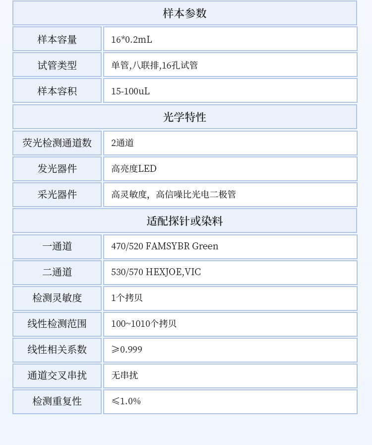样本参数:样本容量:16*0.2mL试管类型:单管,八联排,16孔试管