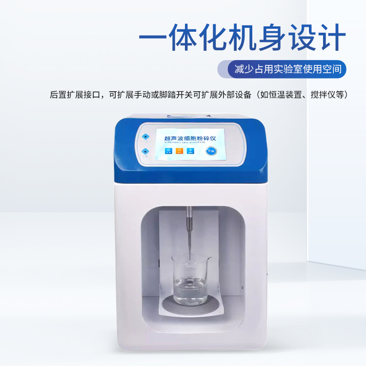 超声波细胞粉碎仪(一体式)将隔音箱融入到主机中形成一体化。功能齐全、外观新颖、性能可靠。仪器采用大屏液晶显示;中央微机集中控制,超声输出、间隙时间、超声功率、温度可任意设定,样品温度监测显示,频率自动跟踪,故障自动报警等功能。