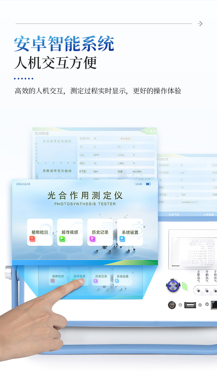 •智能化:采用androids操作系统,高灵敏触摸屏。高效的人机交互,测定过程实时显示,更好的操作体验;