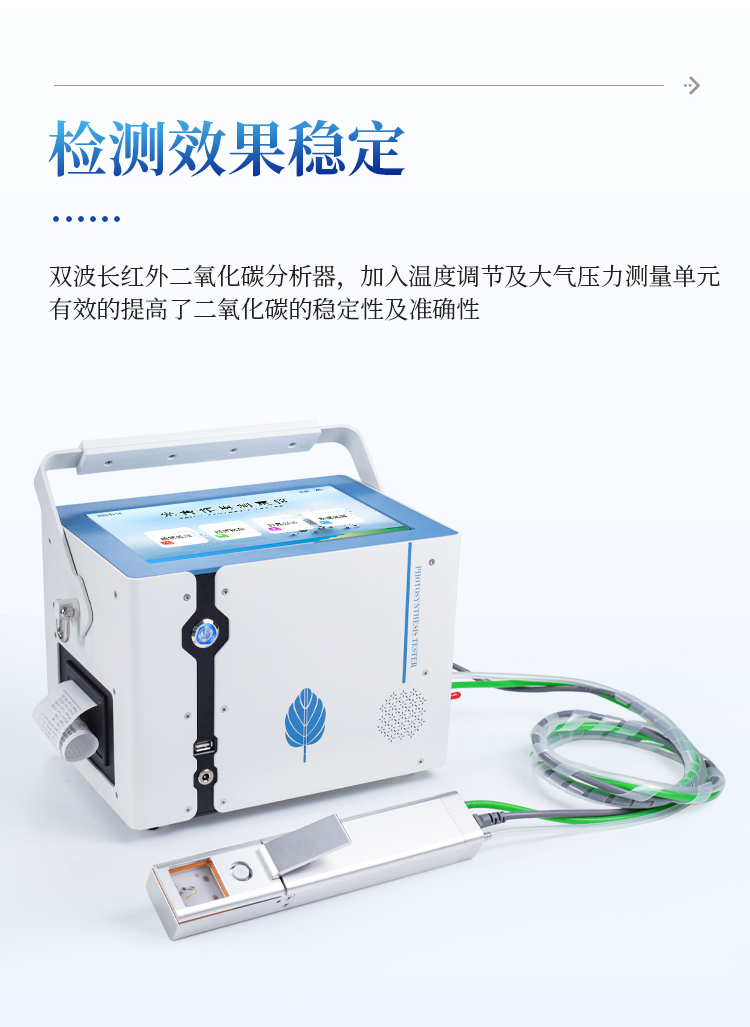 IN-GH1植物光合作用测定仪是一款检测人工气候室、温室、大棚、大田等植物的活体叶片光合作用的实验仪器,测定内容包括空气CO2浓度、环境温湿度、叶室温湿度、叶面温度、大气压力、光合有效辐射(PAR)、叶片光合速率(Pn)、气孔导度(Gs)、叶片蒸腾速率(Tr)、胞间CO2浓度(Ci)、水分利用率(WUE)、呼吸速率(Rd)、蒸腾比(TR)共15项参数,可用于植物生长生理、光合生理、胁迫生理研究等科学研究,植物光合作用测定仪适用于农业科研、教学、园艺、草业、林业以及更广泛的领域。