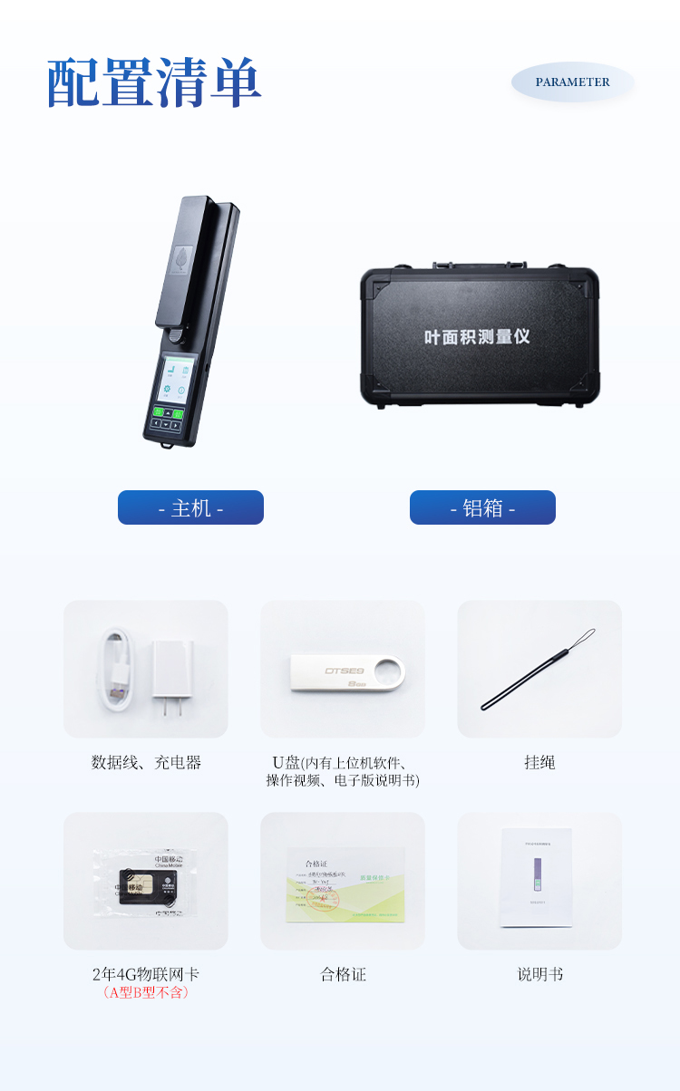 YMJ-G:主机、铝箱、数据线、充电器、 U盘(上位机软件、操作视频、电子版说明书) 、4G物联网卡(2年)、挂绳、说明书、合格证